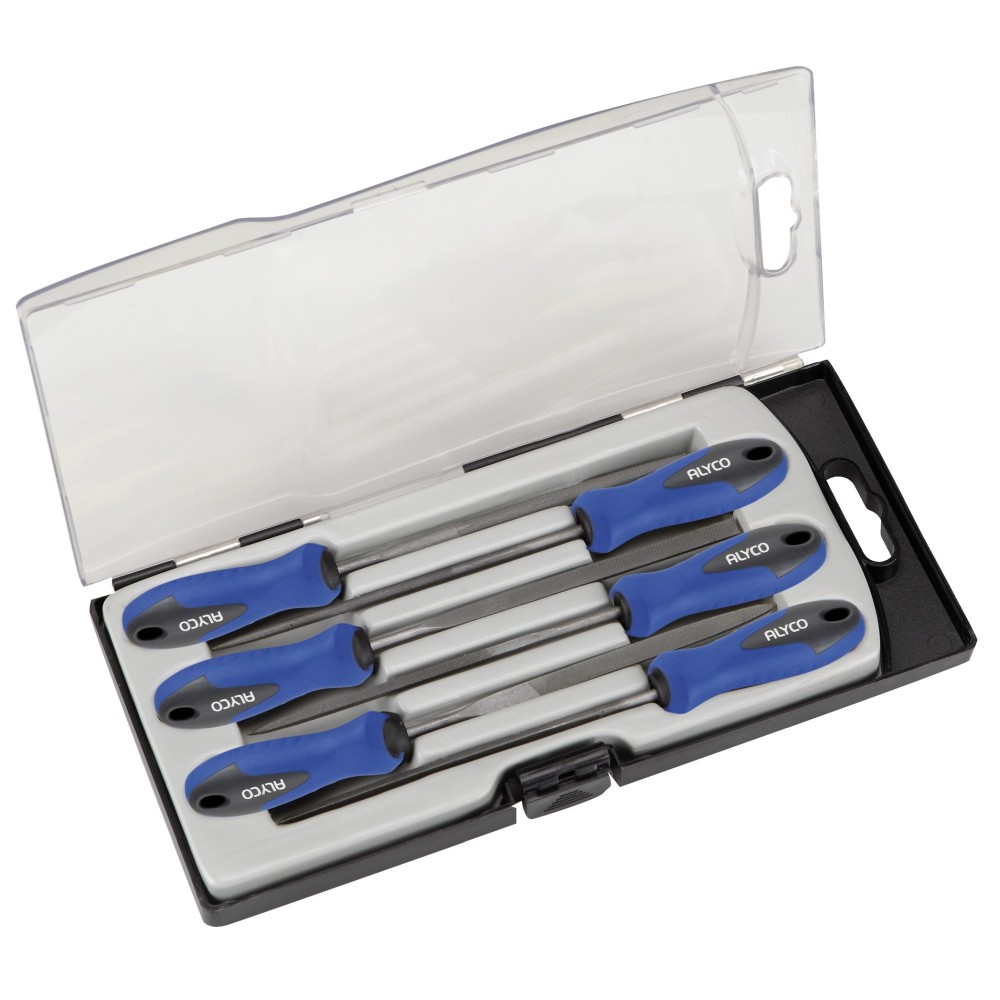 Juego de miniescofinas en caja de plástico, longitud 100 mm, diámetro 3 mm